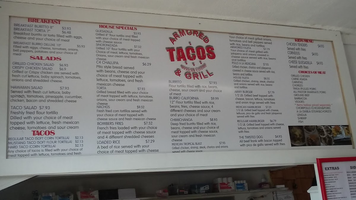 Welcome to Armored Tacos and Grill Restaurant, a culinary treasure located at 110 S Bragg Blvd, Spring Lake, NC. This neighborhood gem is renowned for its authentic Mexican flavors and hearty portions. The menu boasts enticing specialties like the Bombers Fries, topped with your choice of meat and a medley of cheeses, and the impressive Taco Salad, served in a crispy tortilla bowl brimming with fresh ingredients.